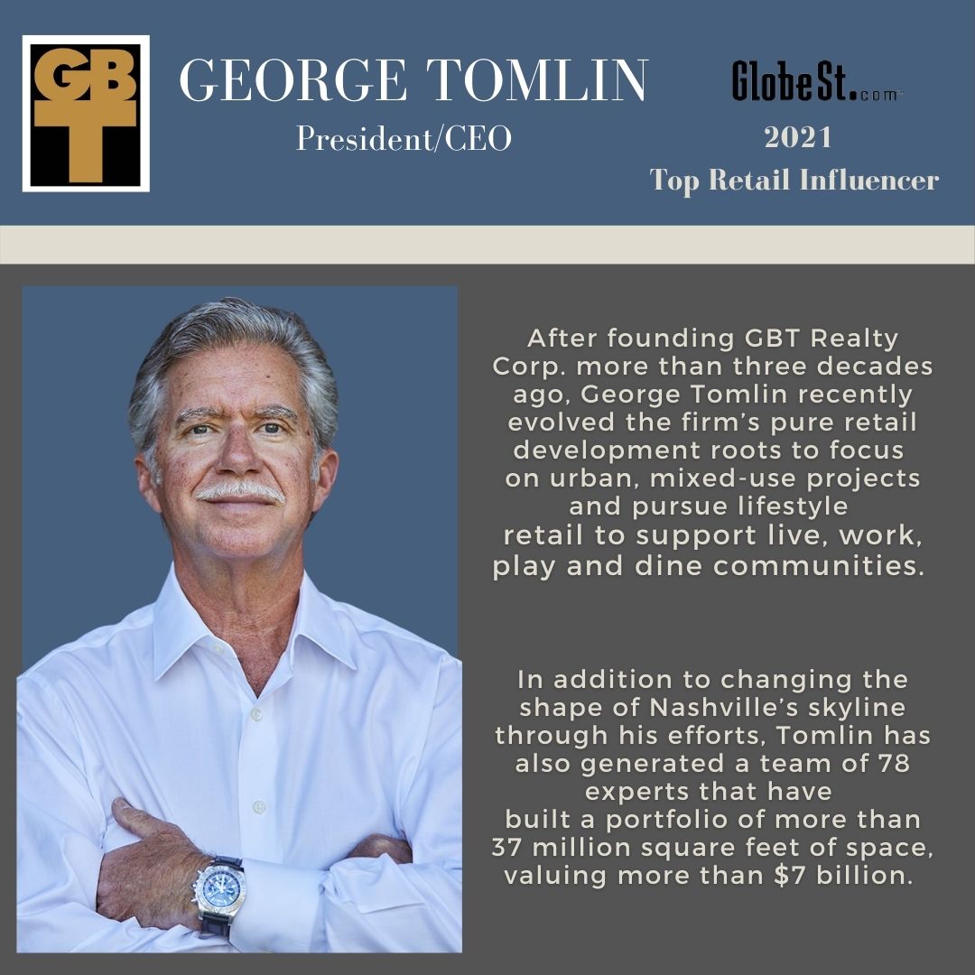 George Tomlin is founder, president and CEO of GBT Realty Corp. From the Nashville Business Journal: http://www.bizjournals.com/nashville ...