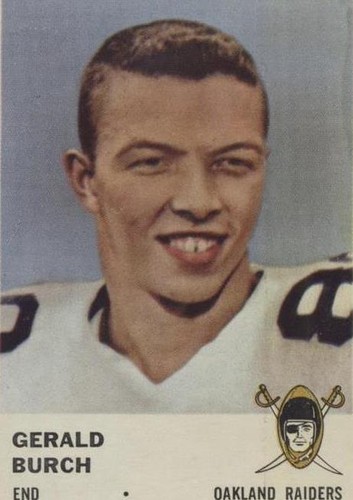 Gerald Burch ... The Raiders selected Burch in the 13th round of the 1961 AFL Draft out of Georgia Tech. He played in 14 games and caught 18 passes for 235 yards ...