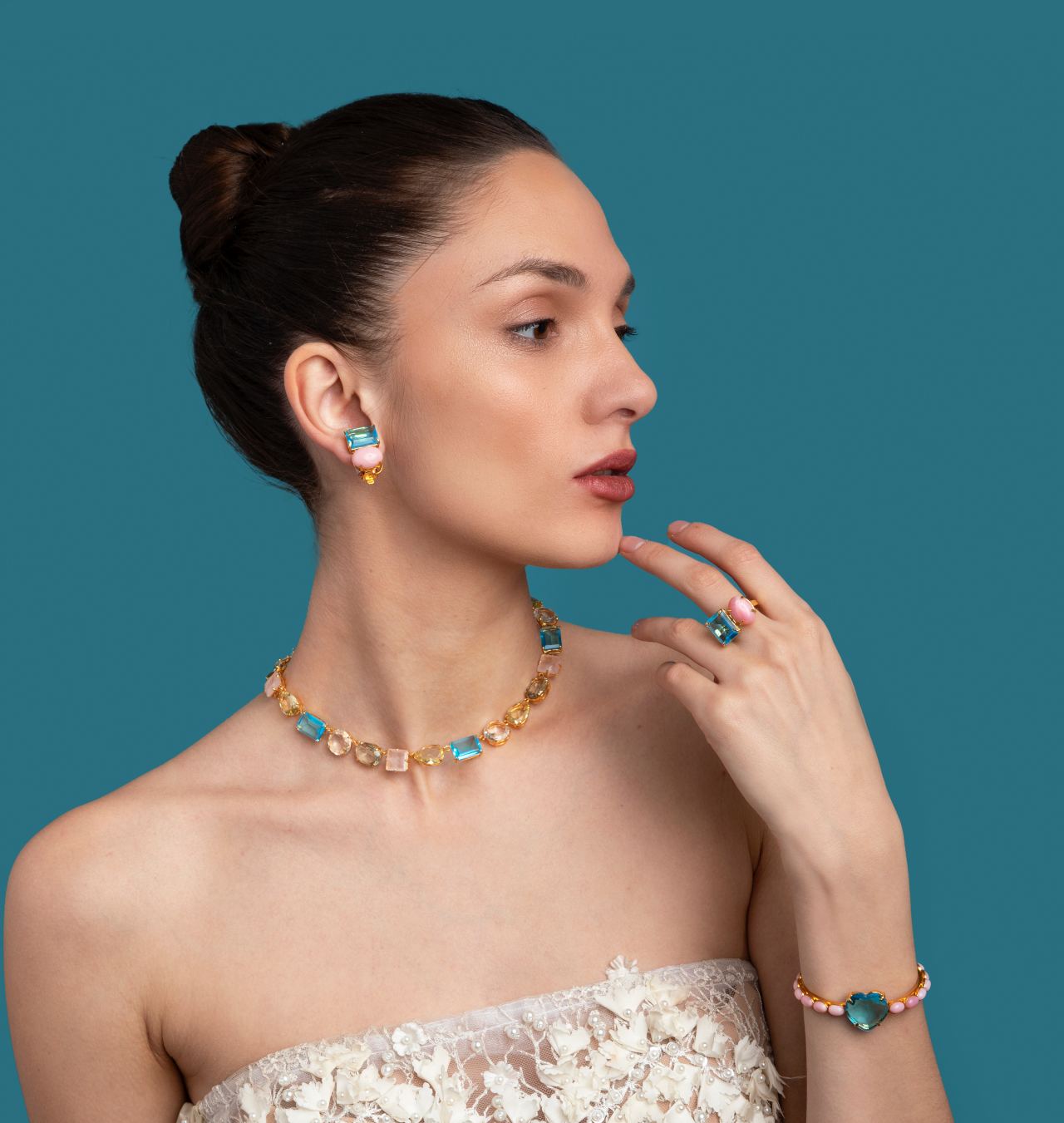 The Geraldine Ring exudes an aura of sophistication and luxury, showcasing the perfect juxtaposition of two semi-precious stones, each distinguished by ...