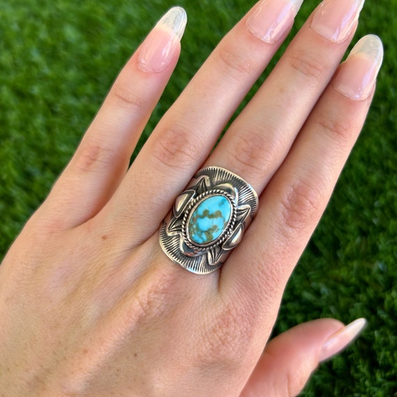Turquoise & Sterling Silver Ring - Adrienne Gordon - Size 9 - Etsy