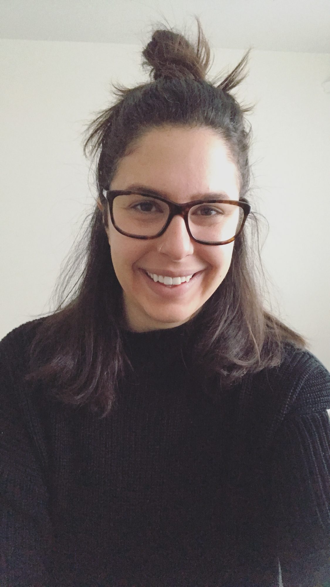 Meet Dr. Grace Abruzzo, PT, DPT, WCS, CAPP-OB/PELVIC, SEP. Dr. Grace has a closed lip smile. Their left hand is behind the nape of their neck.