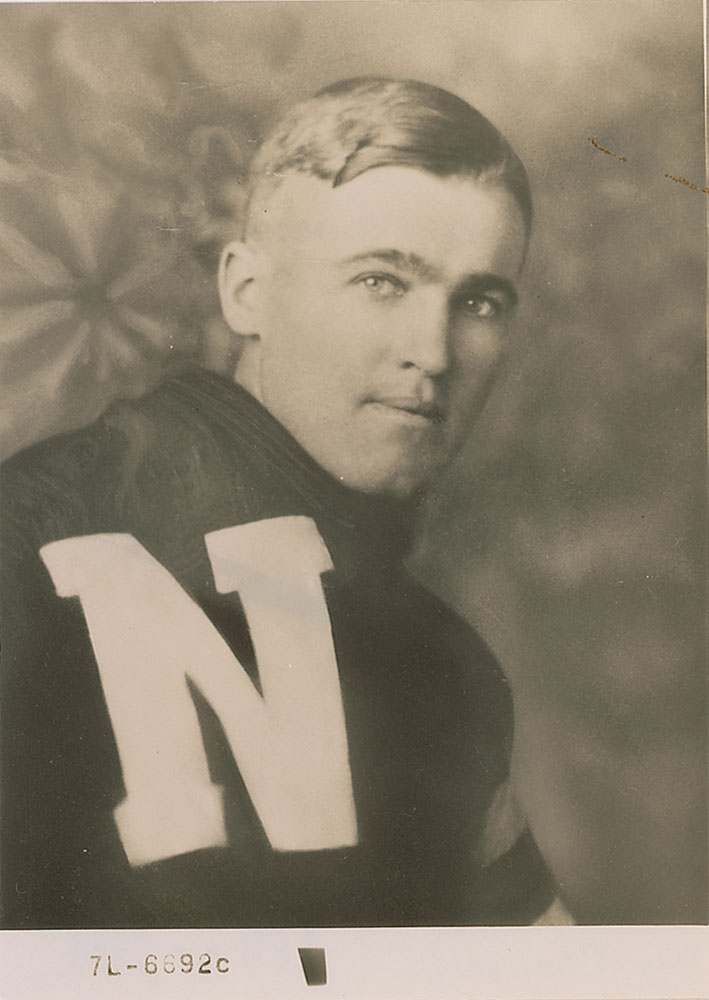 Glossy 3 x 4.25 photo of Chamberlain in his Nebraska uniform, signed on the reverse in blue ballpoint, “Guy Chamberlain, Neb 1915, All American.” In fine ...