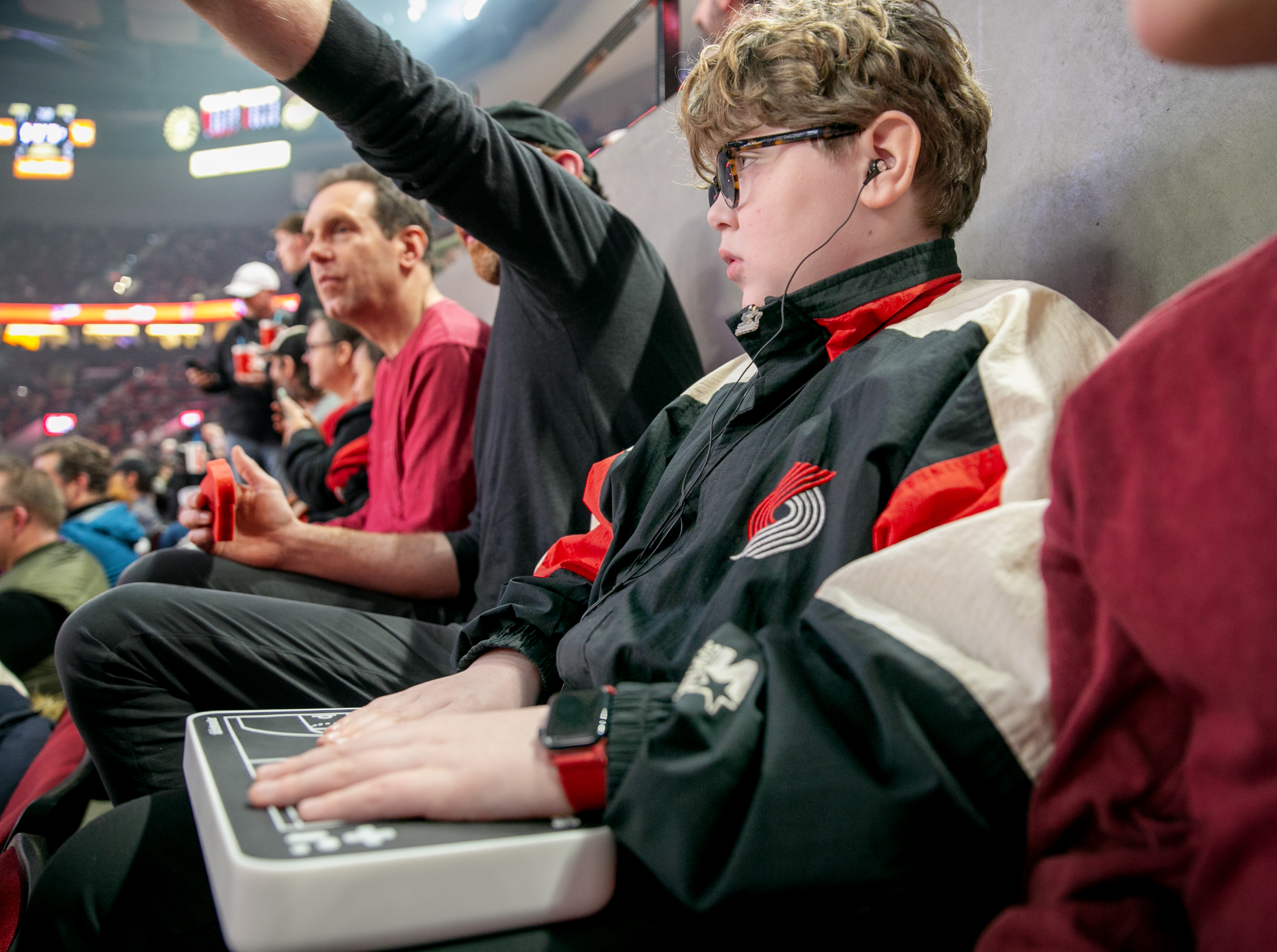 Hank Vogel, age 11, uses a OneCourt tactile device during a Portland Trail Blazers game. Anna Lueck for OPB. The OneCourt also has a companion ...