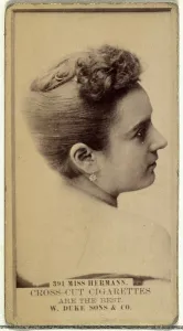 Card Number 261, Hattie Starr, from the Actors and Actresses series (N145-7) issued by Duke Sons & Co. to promote Duke Cigarettes. W. Duke, Sons & Co. 1880s.