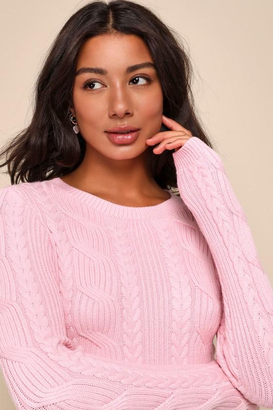 Heather Cable Sweater | Light Pink