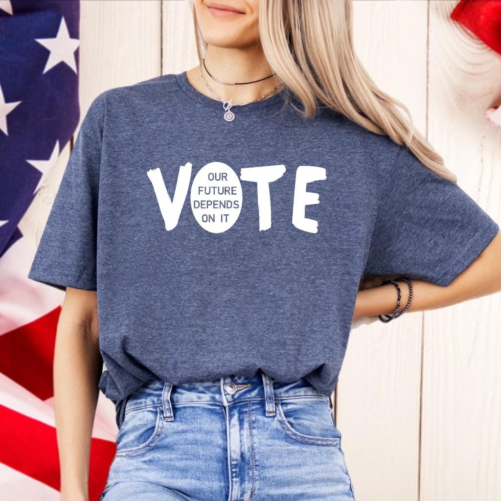Vote Our Future Depends on It Crewneck Tee, Harris Walz 2024 ...