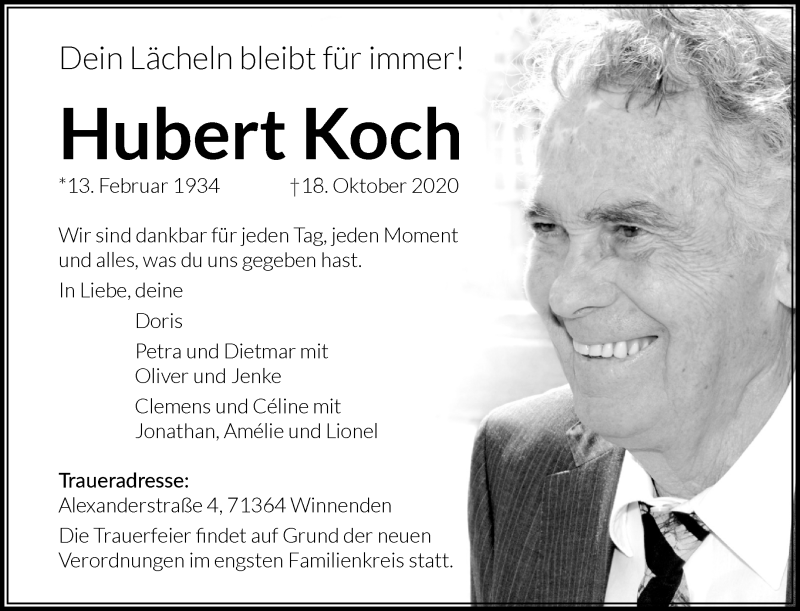 Hubert Koch Obituary - Death Notice and Service Information