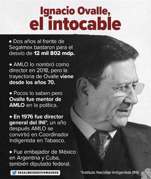 ... Ignacio Ovalle (desfalco en Segalmex por más de 15 mil millones de pesos), el exsecretario de la Marina, Ojeda y varios de sus familiares y ...