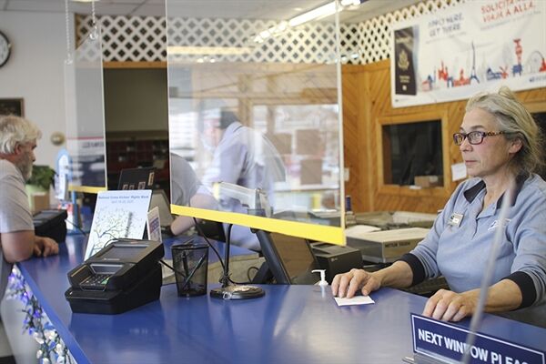 Winona Post Office employees Barb Schueler and Jace Sheldon get community members' mail moving.