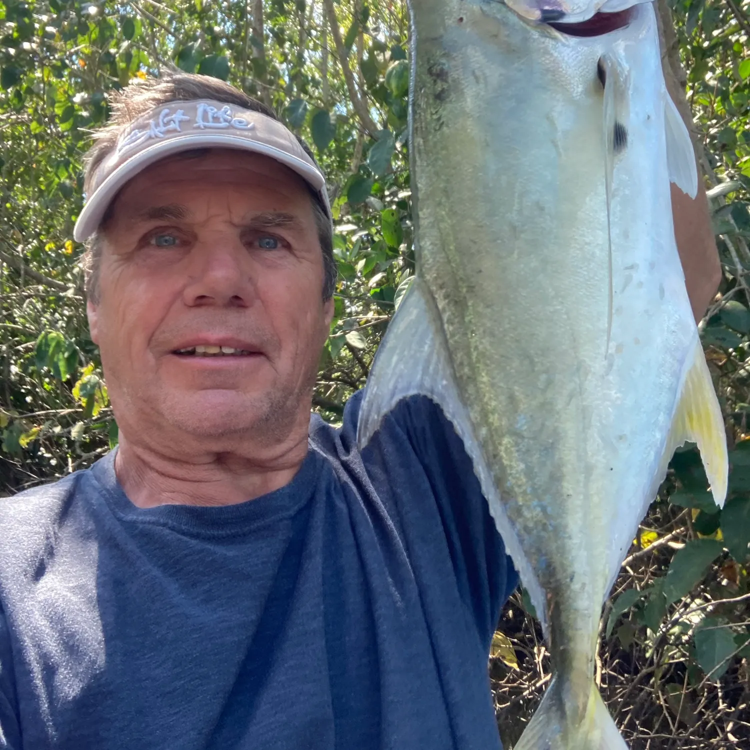 A fisherman holding a crevalle jack fish at Bill Baggs Cape Florida State Park.