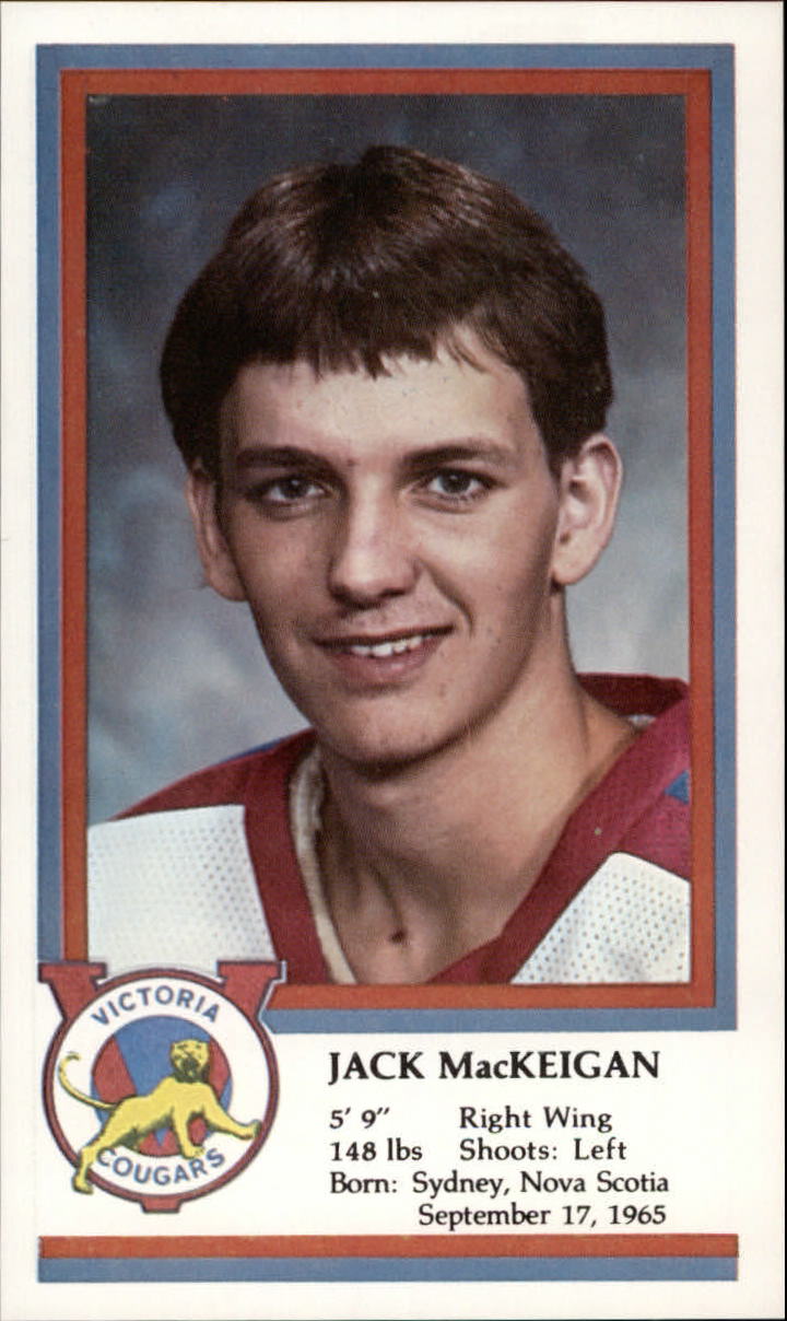 Collector Cards - Victoria Cougars - 1983-84 - Jack MacKeigan. Born: Sydney, Nova Scotia. Ungraded but I believe it may be NM-MT. League: WHL.
