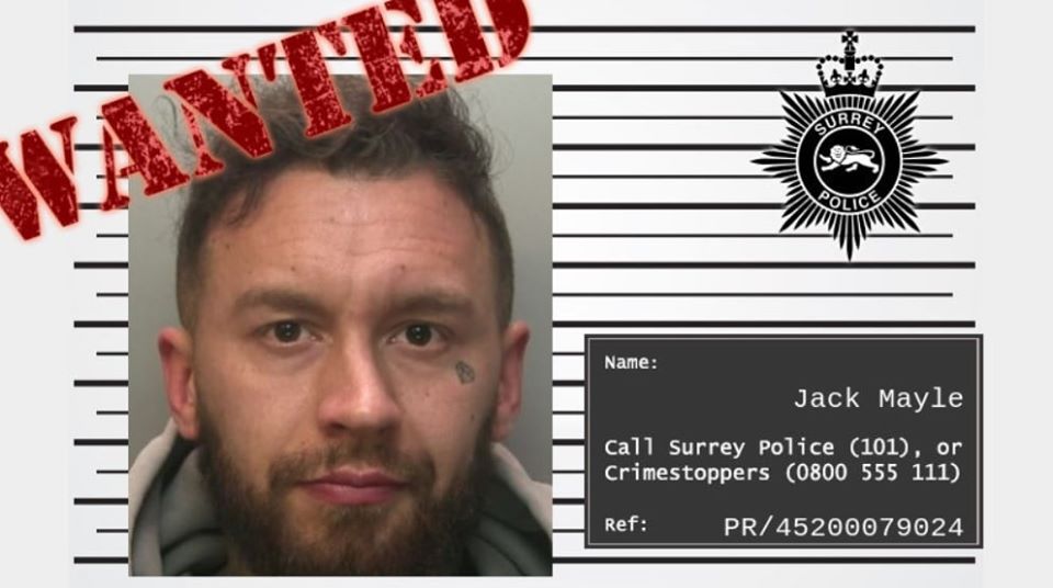 Surrey's most wanted fugitive Jack Mayle has been on the run for more than a year