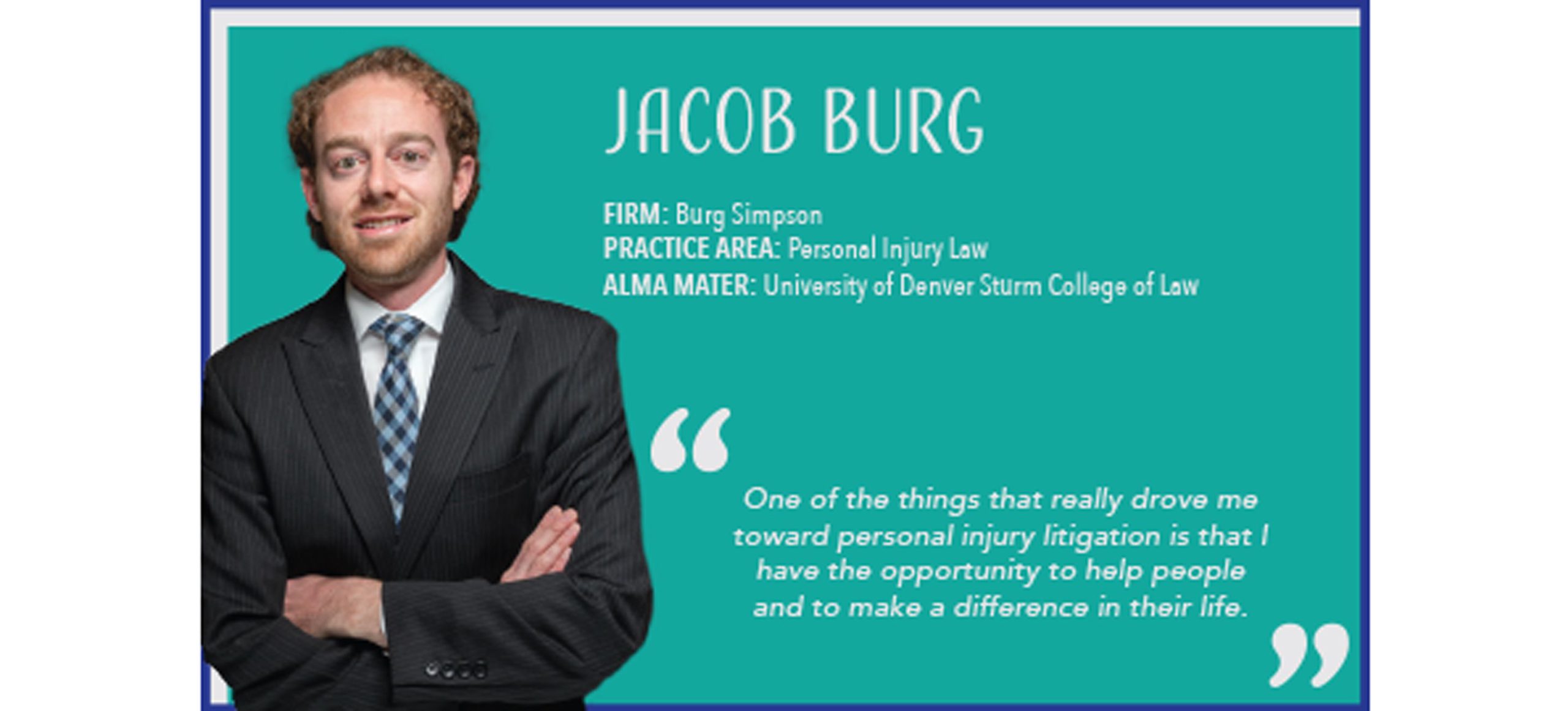 Additionally, Jacob Burg was selected by Law Week Colorado as an “Up and Coming Lawyer” for 2018, and was also named to the Top 40 Under 40 by National Trial ...