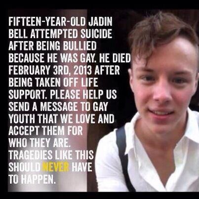 Jadin Bell was just 15 years old when he decided to end his life after enduring homophobic bullying both at school and online.