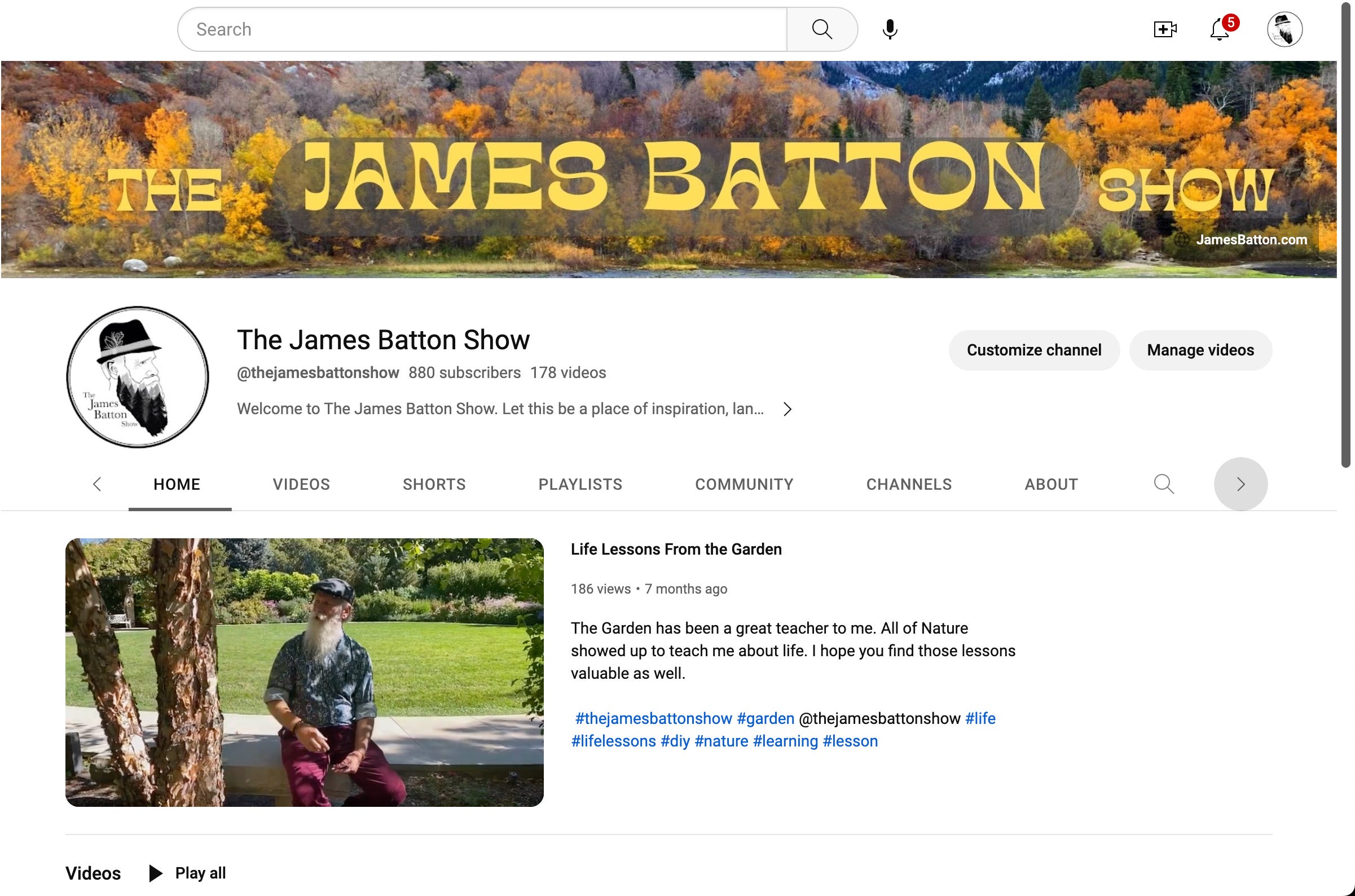 Welcome to The James Batton Show. Let this be a place of inspiration, landscape care, and knowledge from the trees. I started my ...