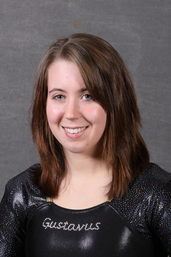Gustavus Adolphus junior gymnast Jamie Ries (Monticello, Minn.) highlighted the second day of the National Collegiate Gymnastics Association (NCGA) ...