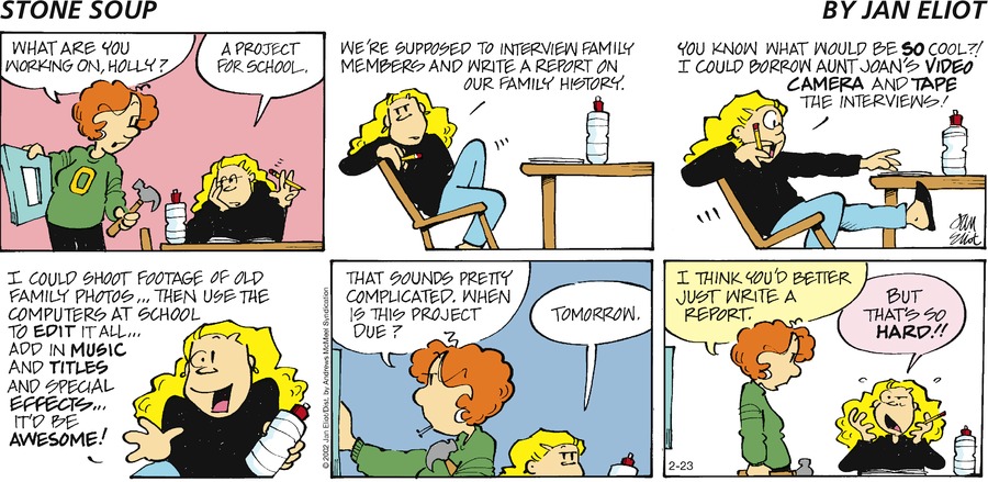 Dive into Stone Soup, a comic strip by creator Jan Eliot. Learn more about Stone Soup, explore the archive, read extra content, and more!