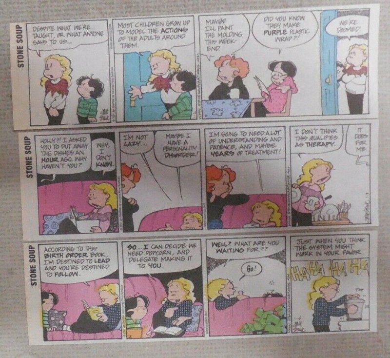 UNFRAMED Doodle. Stone Soup, renamed for the stone soup fable, is an internationally syndicated American comic strip written and illustrated by Jan Eliot.