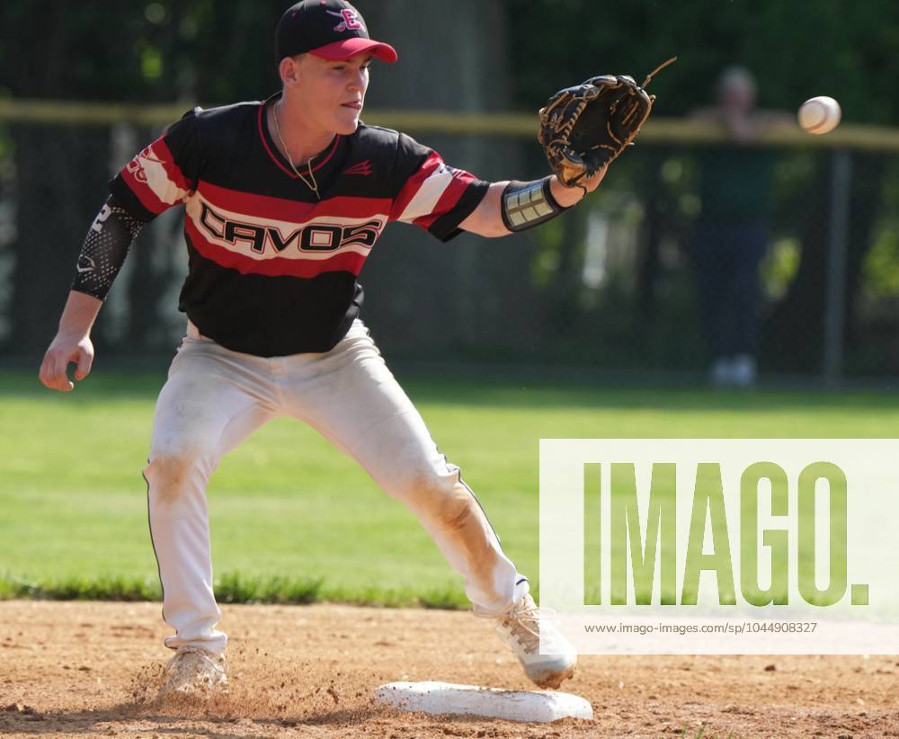 Syndication: The Record Emerson, NJ -- May 8, 2024 -- Jared Scharf of Emerson makes this catch at second as Hackensack visited Emerson in ...