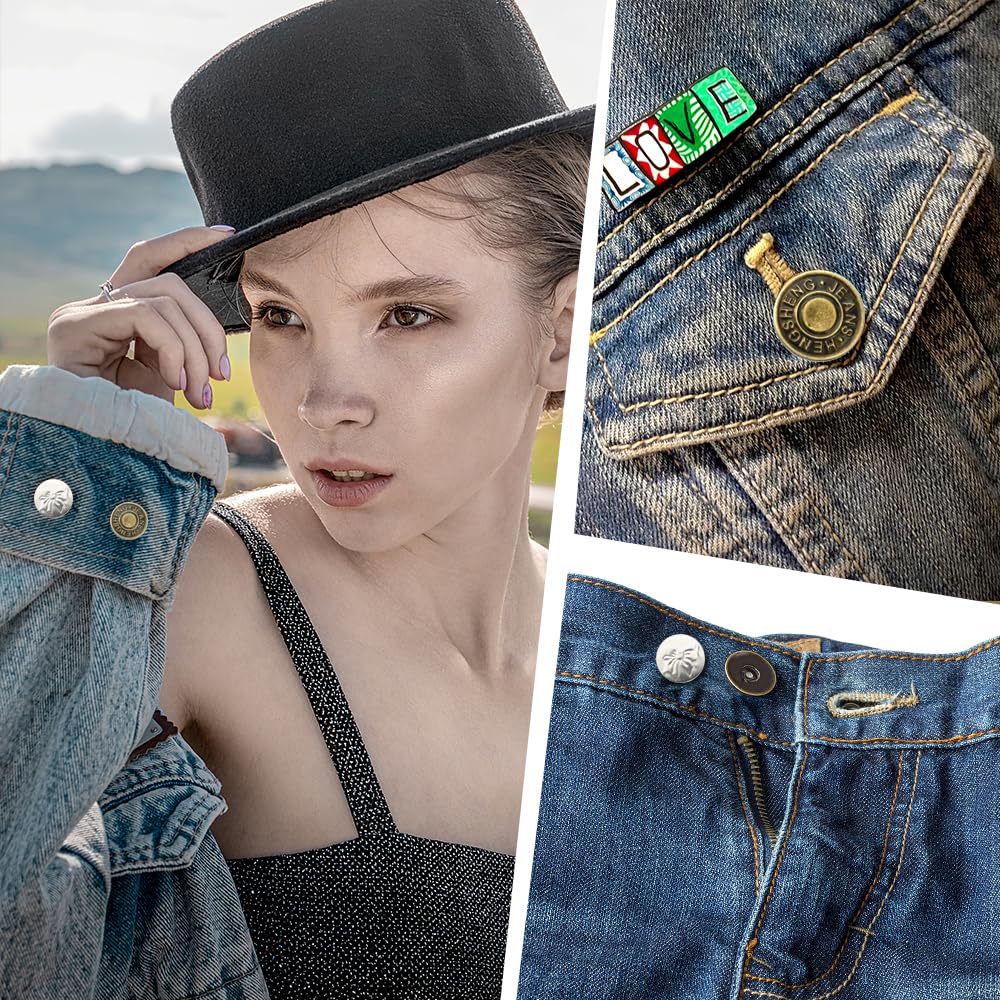 Wgbon 12 Sets Jean Button Pins, No Sew Instant Replacement Buttons, Reusable and Adjustable Pant Waist Tightener for Loose Jeans