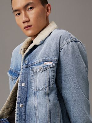 Male Jean Coats with Sheep Men's Denim Jacket Warm Padding ...