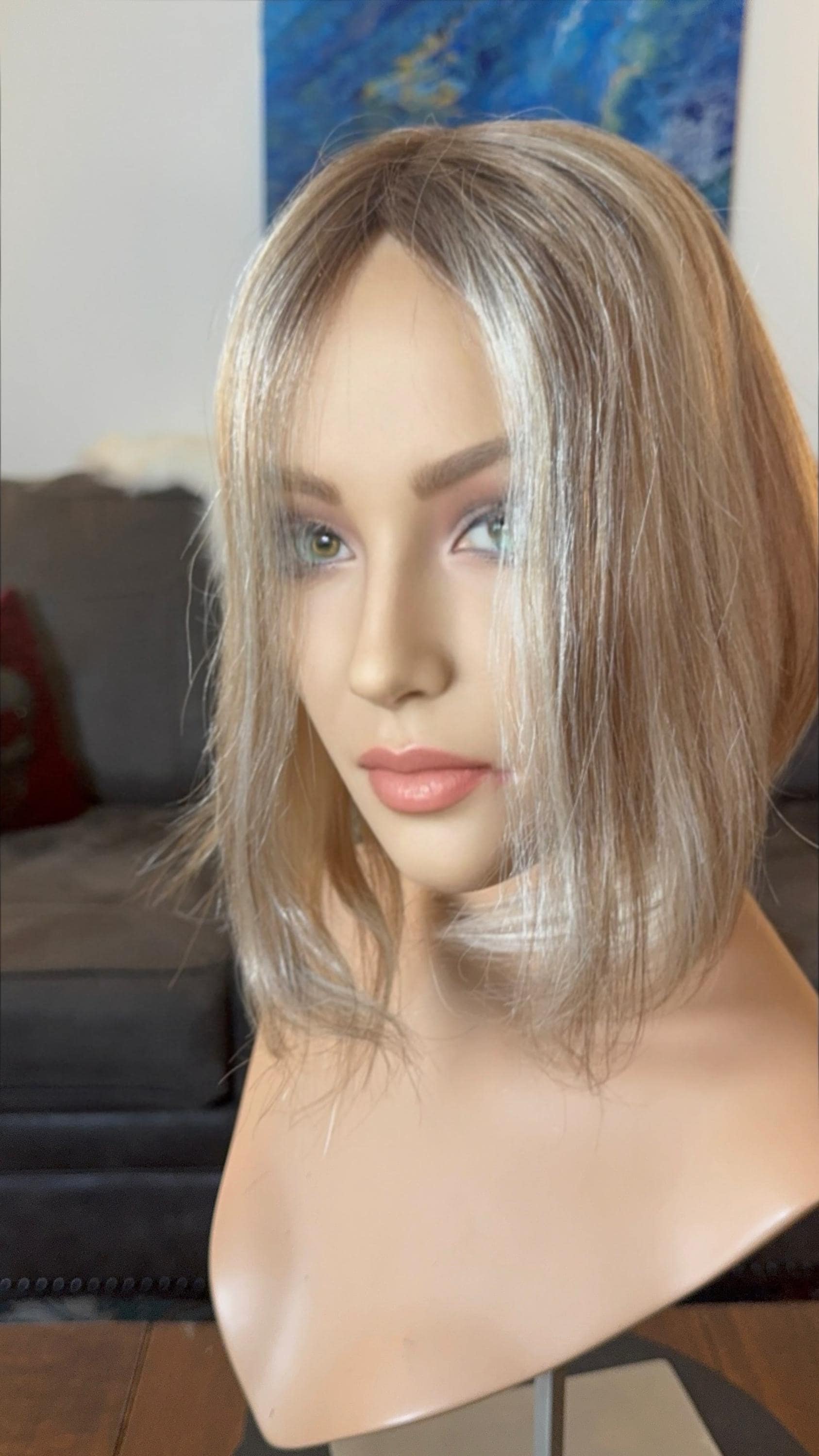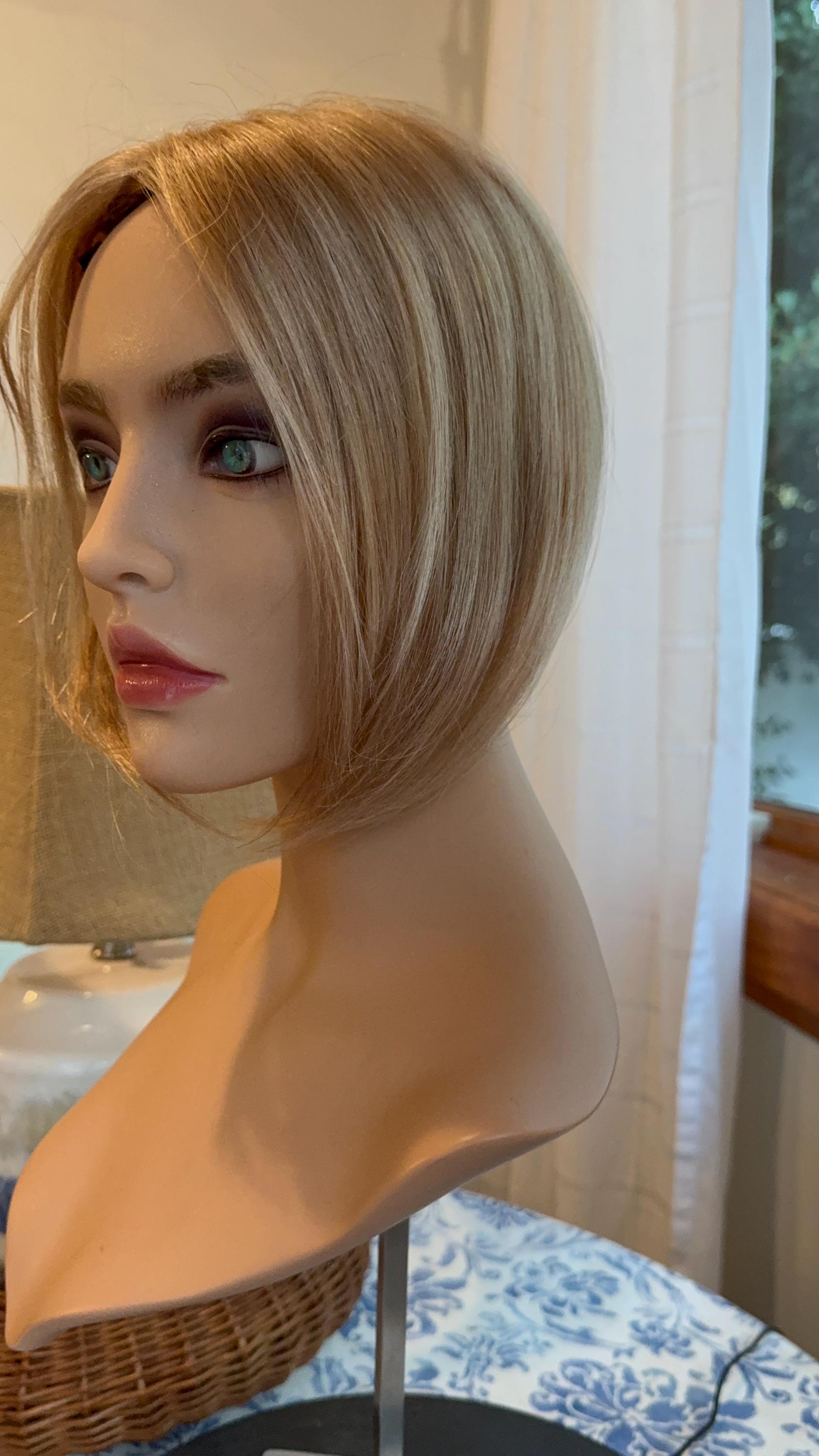 Jeanette Light Density 100% Human Hair Topper Wig Warm Light Blonde Ombré Root Color Blend Silk Top Parting Topper · Item details · Shipping and return policies.