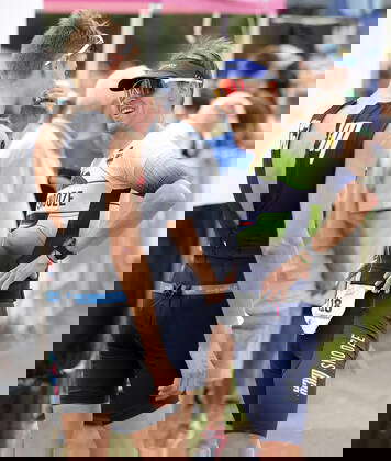 Gilles Miny talking with Jerome Ewen athletics Luxembourg, season 2022 21 08 2022 international triathlon Weiswampach national triathlon champi