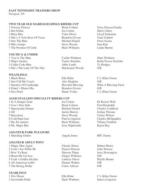 Jerry Highsmith. Jerry Highsmith Knoxville, TN 37914. Phone: Alternate Phone: 865-556-5219. Email: highsmithstables@gmail.com. First National Bank of Middle ...