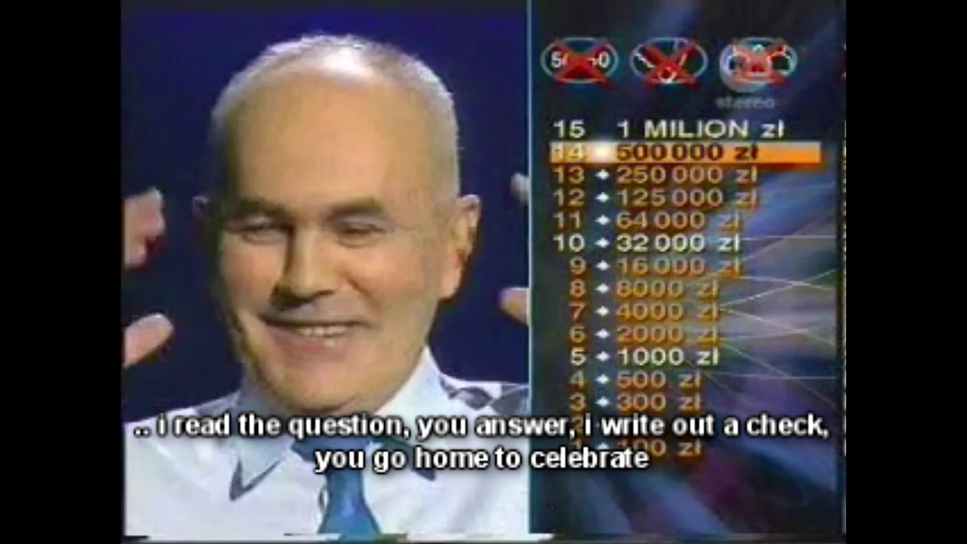 Jerzy Mirski (1943 - November 1, 2016) was a contestant who appeared on series 3 of Polish version of WWTBAM and won 500 000 zlotys on 14th October 2001.