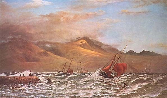 JOHN GIBB (1831-1909, SCOTTISH/NEW ZEALAND), ''Port Chalmers'', North Isleand, New Zealand, signed and dated 1891 verso, oils on canvas. 12'' x 18'' (31 x 46 cm) ...