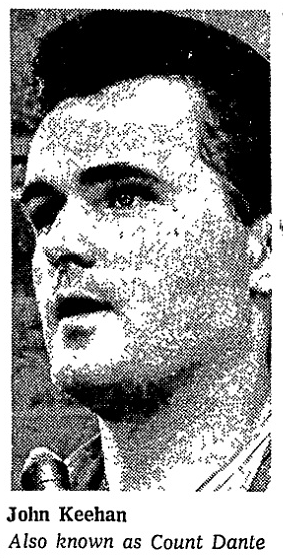 Count Dante, aka John Keehan. Legendary. In 1965, he and a friend were arrested for attempted arson after taping blasting caps to Gene Wyka's Chicago martial ...