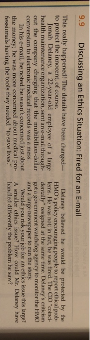 Scenario: Jonah Delaney, a 22-year-old employee of a large health maintenance organization (HMO), sent an email throughout the company charging ...