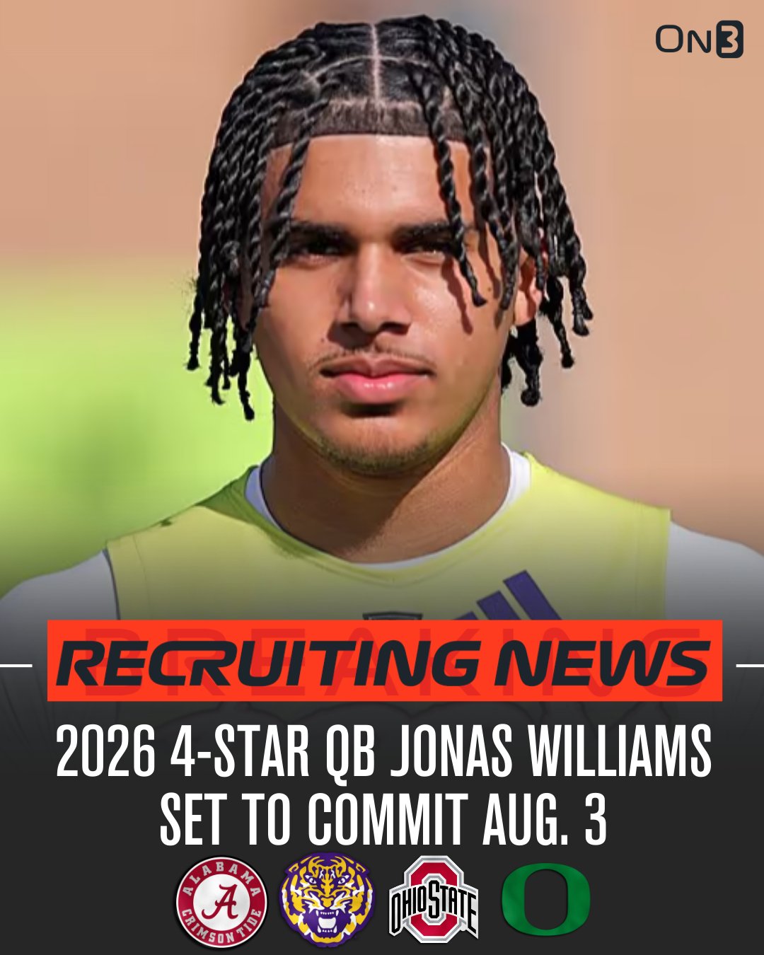 2026 4* QB Jonas Williams flips from Oregon to USC. Recruiting · Player 247 profile page · Source. Made with the r/CFB Recruiting Post Generator.