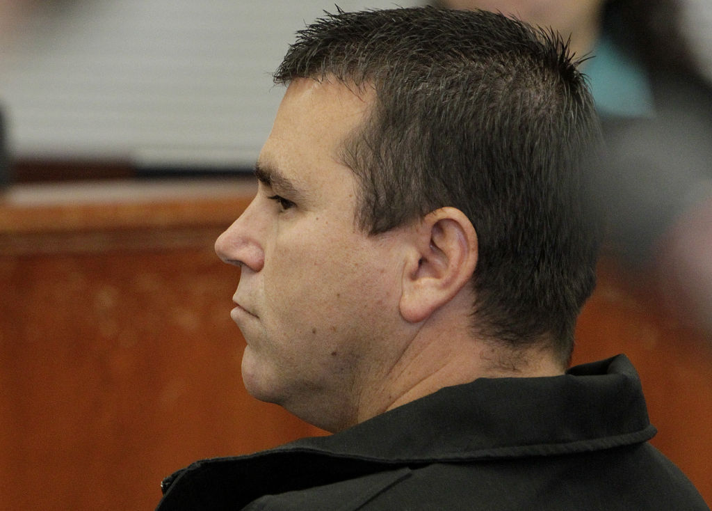 Lompoc police Sgt. Joseph Stetz appears in a Santa Maria courtroom Thursday on a felony vandalism charge stemming from a domestic dispute with his wife last year.