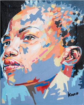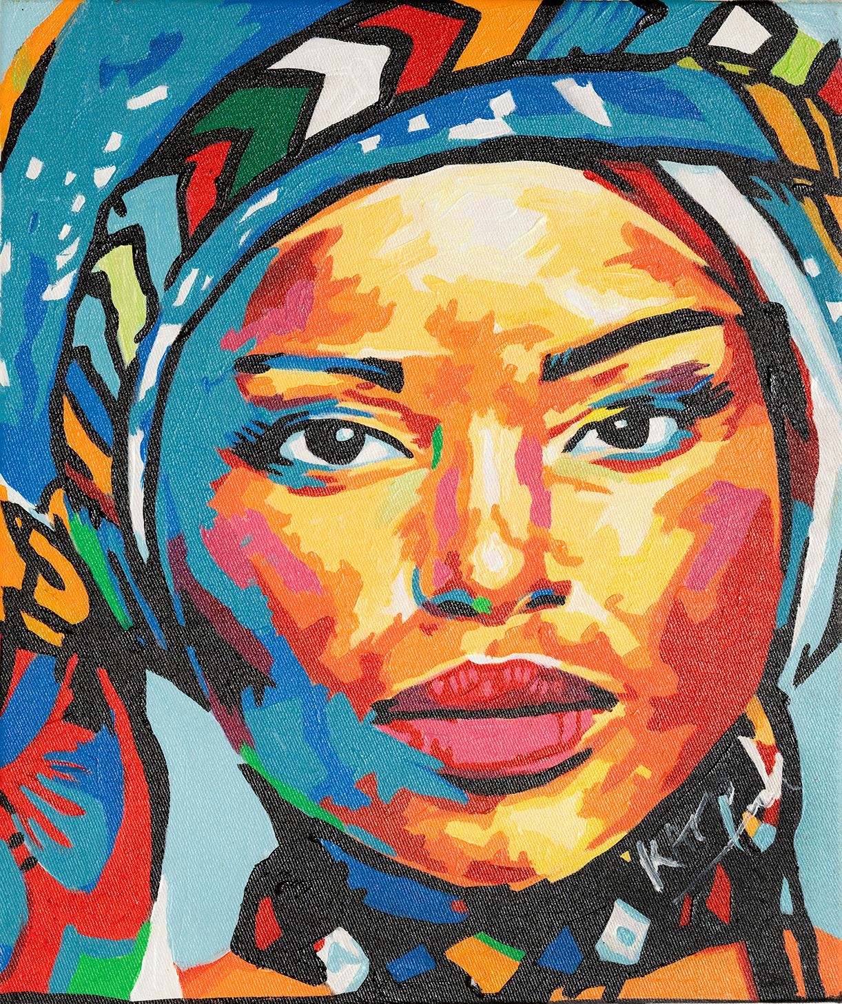View Untitled - Portrait with Headscarf By Josh Kano; Acrylic on canvas; 11.75 x 10 inches; Signed; Edition. Access more artwork lots and estimated & realized auction prices on MutualArt.