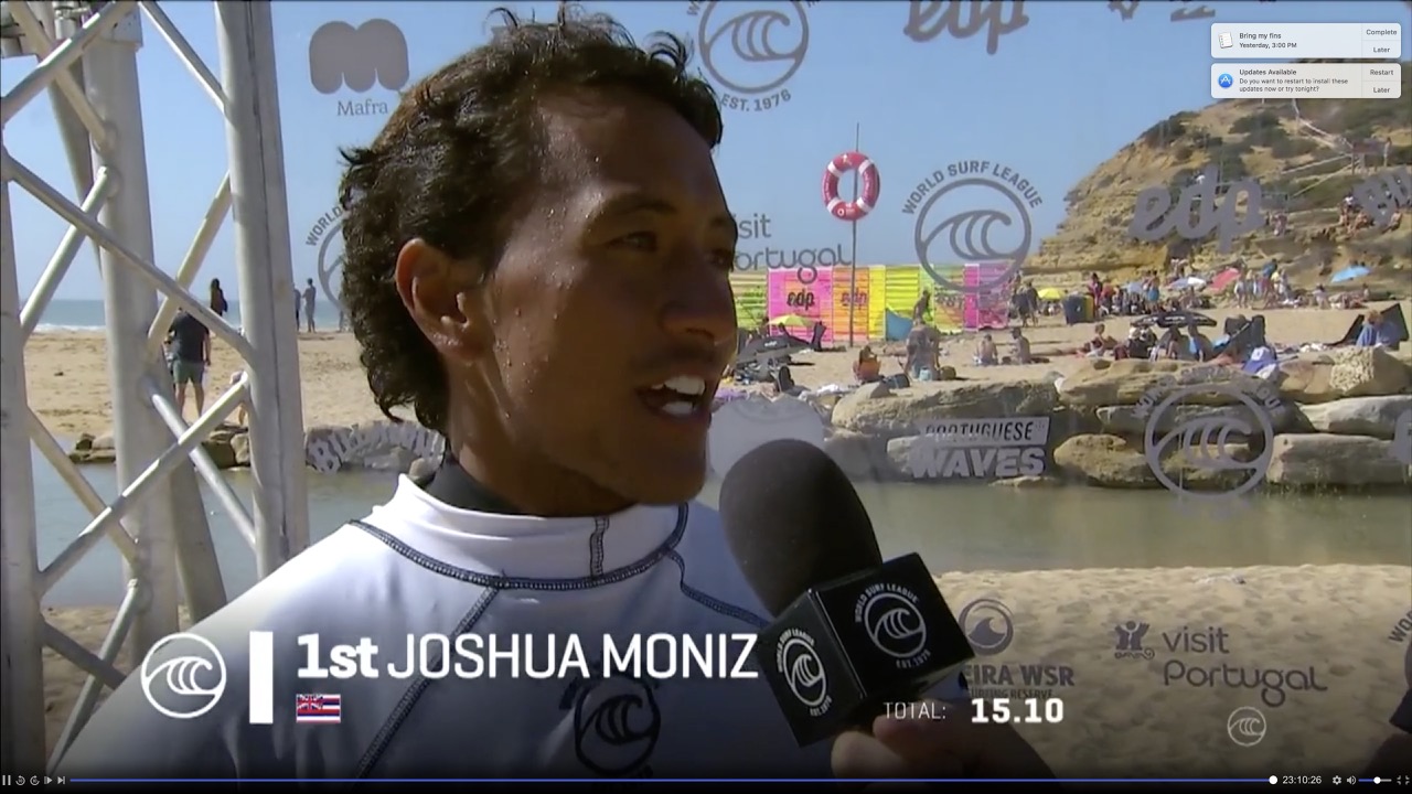 Stay in the know and top of the action from pro surfer Joshua Moniz. Find videos, photos, age, height and the latest tour results and rankings here.