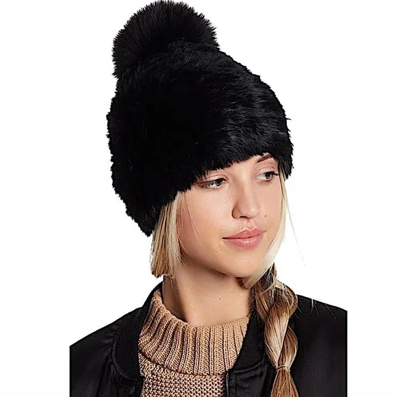 Brand = Karin Charles; Size = One Size; Color = Black; Fabric = Rabbit Fur; Style = Pull On; Location = Sandy Springs.