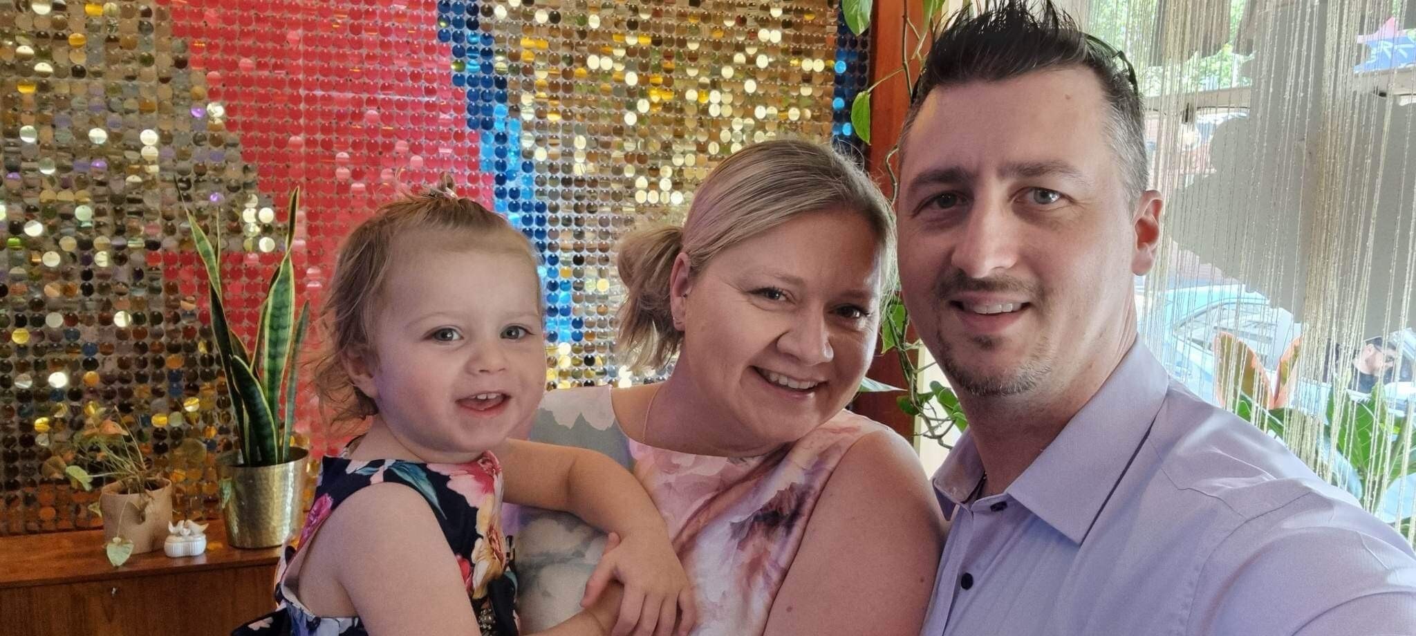 "I had some rectal bleeding … and some change in my bowel habits," she said. Katherine Goodall holding daughter Mackenzie, standing with partner ...