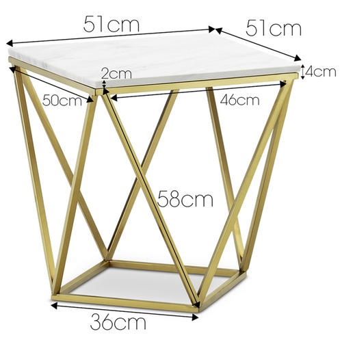 Brushed Gold Luxe Katherine Marble Side Table ; Table Top Thickness · 2cm ; Overall Product Weight · 17 Kilograms ; Type: Side Table ; Shape: Square ; Frame Material: ...
