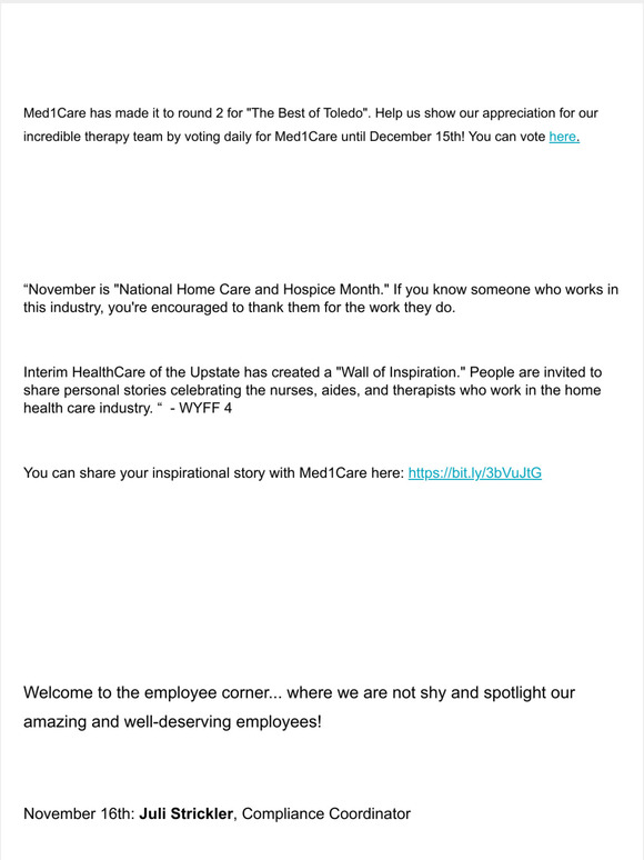 Your Med1Care Newsletter - Milled