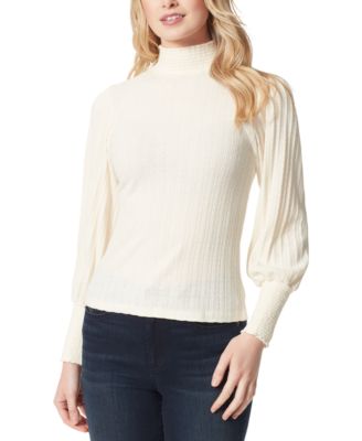 Jessica Simpson Kaye Mock-Neck Smocked-Cuff Sweater - Macy's