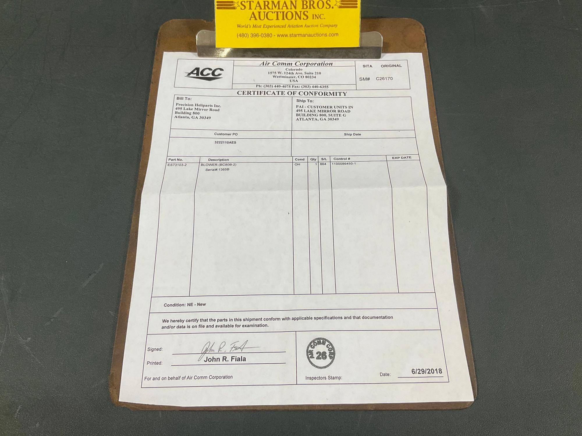 Bid in a Proxibid online auction to acquire a KEITH BLOWER ASSY ES73103-2 ALT# BC80B-2 (INSPECTED/OVERHAULED) from Starman Bros.