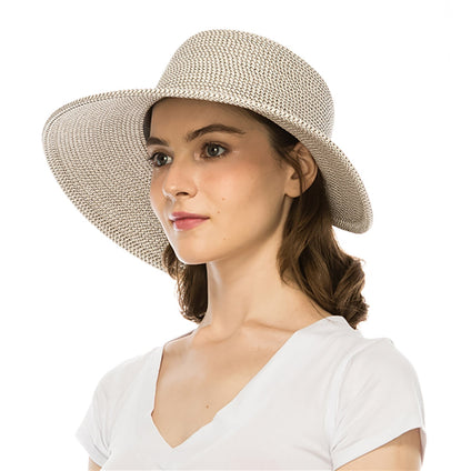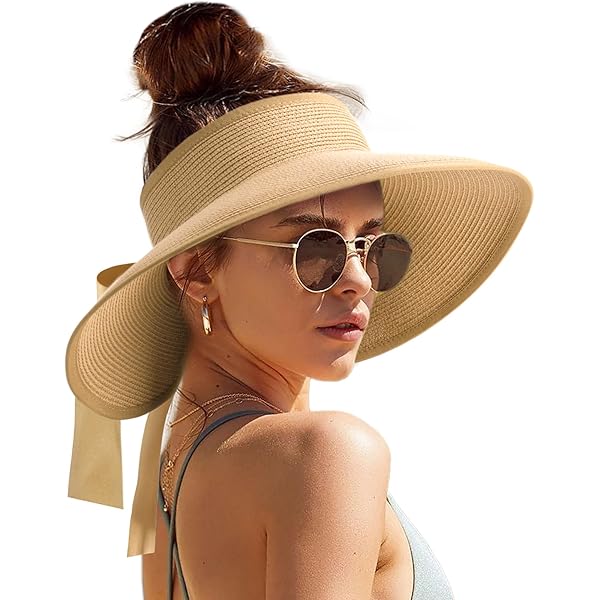 A New Day Straw Visor Hat W/ Hook & Eye Closure OS Karen Keith Straw No Back Hat With Ponytail Hole — SetarTrading Hats.