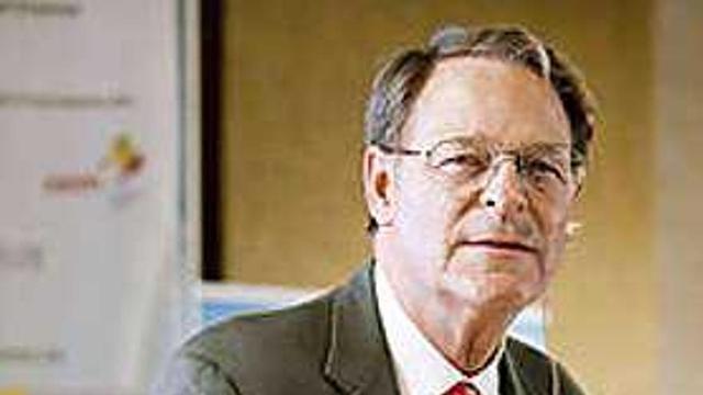Professor Ken Morse, chairman of Entrepreneurship Ventures Inc, poses for a photograph following an interview while attending a conference at...
