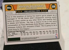 Baloncesto de Kevin Durant Topps temporada 2008-09 Tarjetas de ...