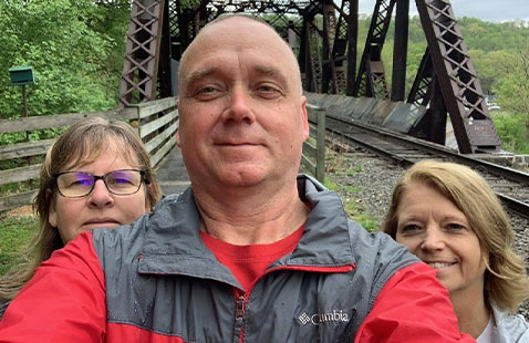 Pictured are Kirk Engle '90, Amy Beeman Engle '90 and Patti Thomas '87, who braved the rain and hiked the Great Allegheny Passage in Cumberland, Md. CLC ...