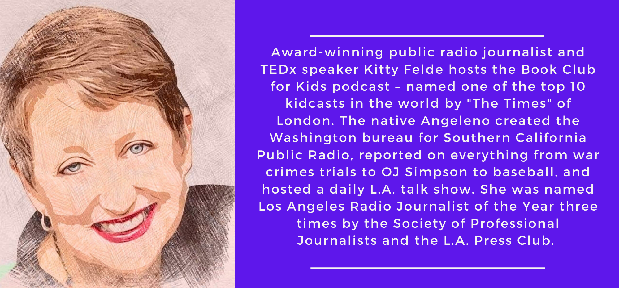 Award-winning public radio journalist and playwright Kitty Felde hosts the award-winning Book Club for Kids podcast – named one of the top 10 kidcasts in ...