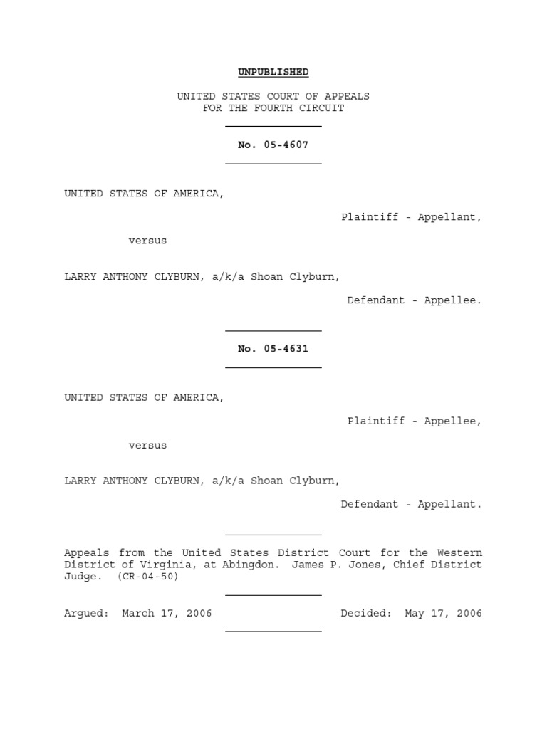 US v. Clyburn, No. 05-4607 (4th Cir. 2006) - Justia Law