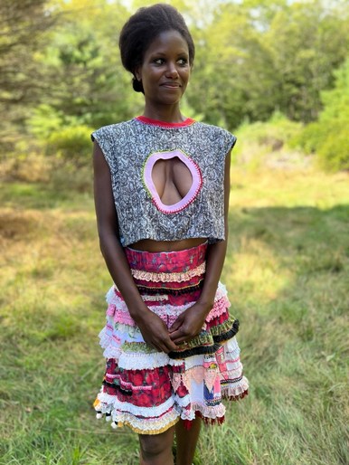 I made a tie for Tommy the same way with a vintage bowtie from my collection and scraps of vintage silk patched on. Larry Krone & Carin Kuoni.