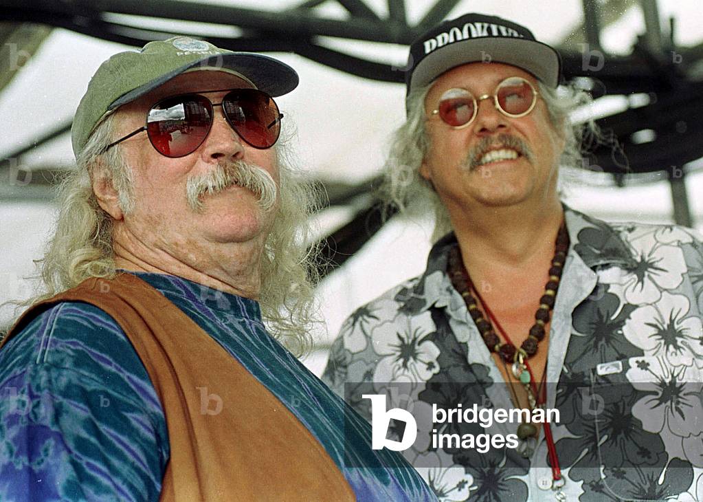 Promoter Michael Lang (R) and his bodyguard Lee Blumer watch from backstage at the Woodstock 94 music festival in Saugerties, N.Y. August 13. · Add to cart.
